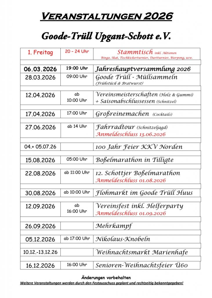 Veröffentlicht am Februar 4, 2026Februar 4, 2026 von Melanie MaasUnser Veranstaltungskalender für 2026!!